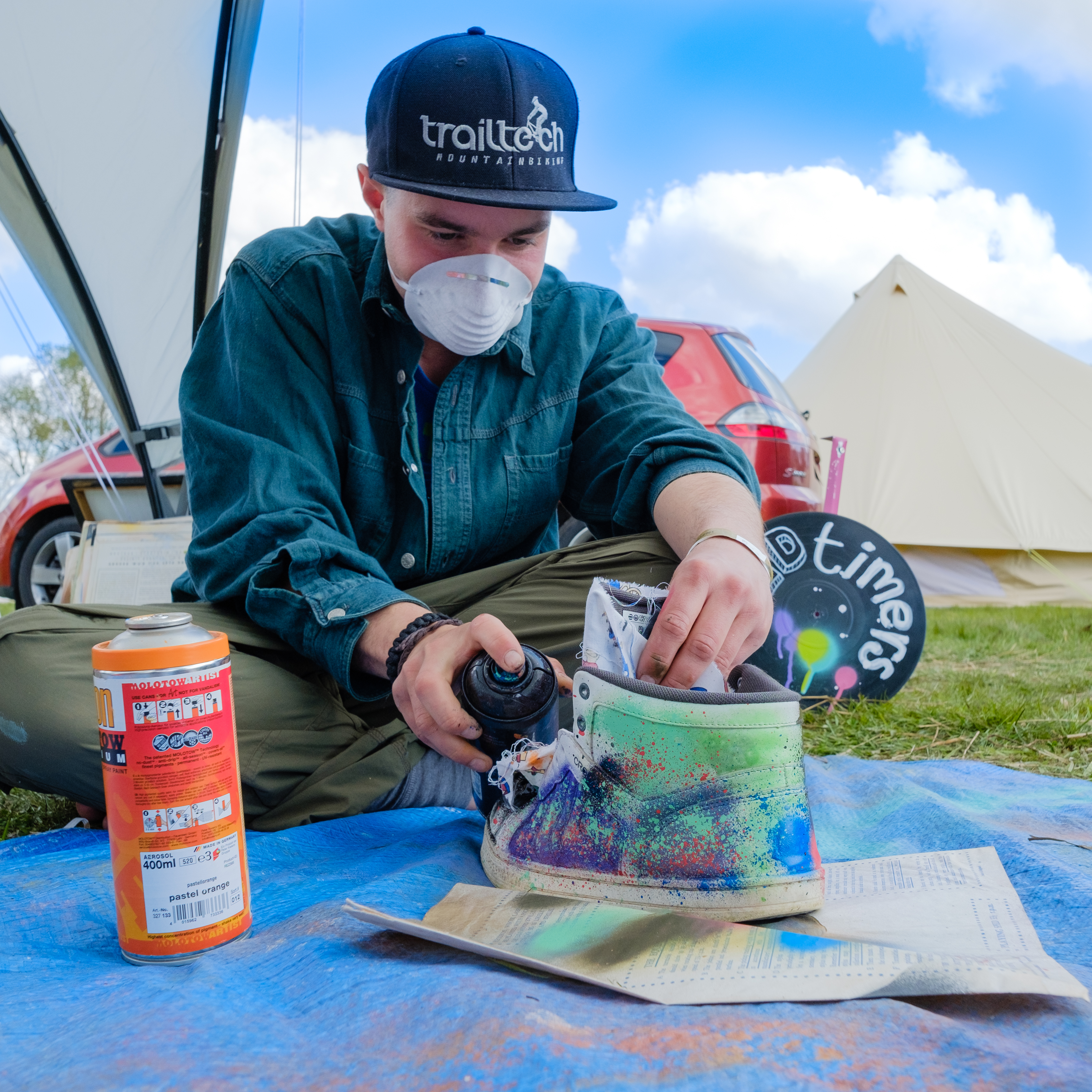 Pictures below: uniquely designed laser-cut stencils for ‘U CAN Spray’, and spray painting in action